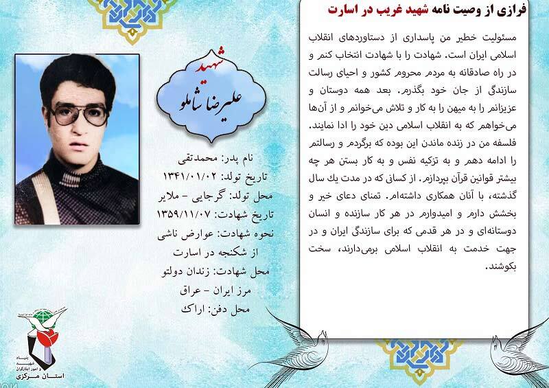 فرازی از وصیت نامه شهدا ۰۵ بهمن ۱۴۰۴ | ۰۹:۴۵ کد : ۵۷۶۸۳ اطلاعیه ارسال به دیگران نام شما ایمیل شما ایمیل دریافتکننده ارسال انصراف تعداد بازدید:۵۳۰ فرازی از وصیت نامه شهدا فرازی از وصیت نامه شهید بزرگوار علیرضا شاملو :